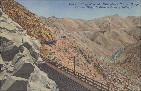 SD-655 Train Track through Desert Hills, San Diego, California - Vintage Image