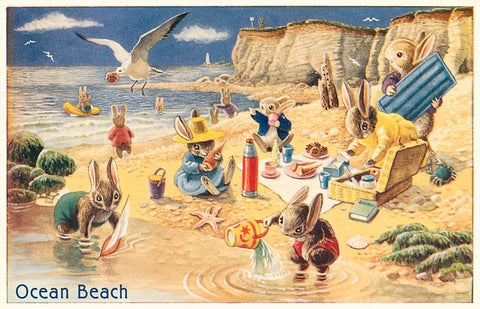 SD-733 Rabbit Picnic, Ocean Beach - Vintage Image