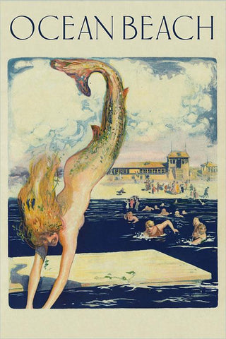 SD-734 Mermaid Diving, Ocean Beach - Vintage Image