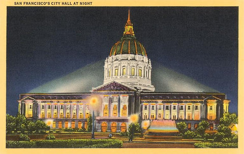 SF-104 Night, City Hall, San Francisco, California - Vintage Image
