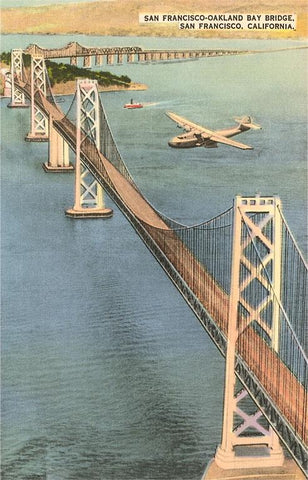 SF-162 Plane over Oakland Bay Bridge, San Francisco, California - Vintage Image