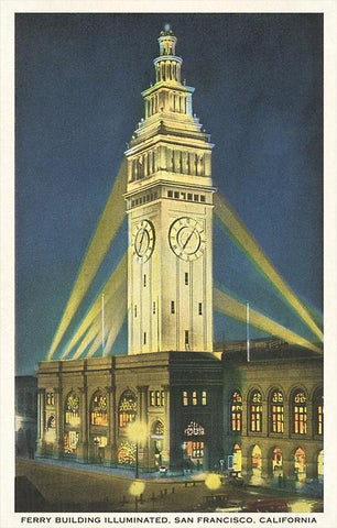SF-181 Night, Ferry Building, San Francisco, California - Vintage Image