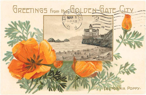 SF-238 Greetings from Golden Gate City, California Poppy, San Francisco - Vintage Image
