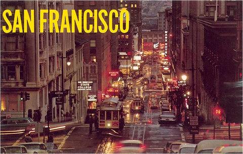 SF-392 Powell Street at Night, San Francisco, California - Vintage Image