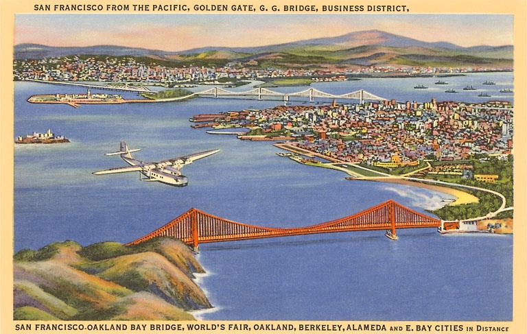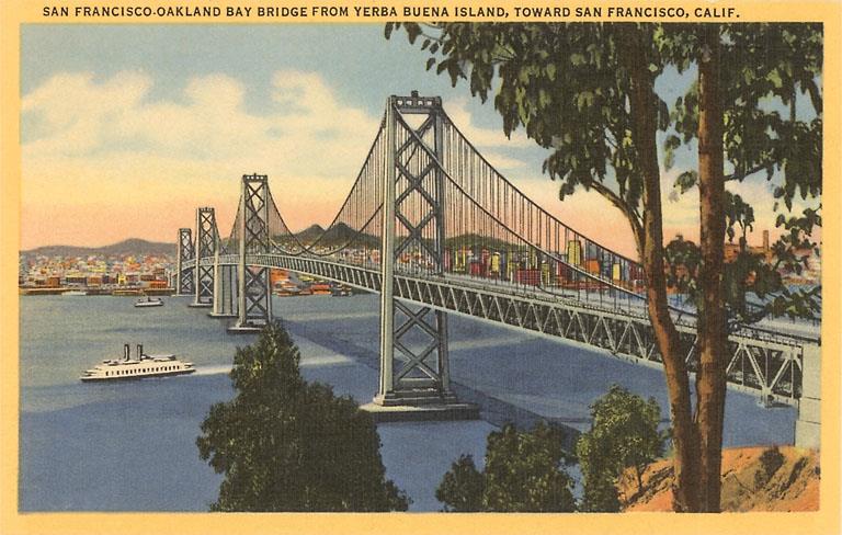 SF-80 San Francisco-Oakland Bay Bridge, California - Vintage Image