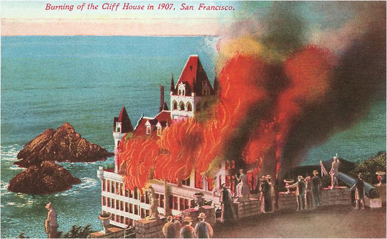 SF-91 Cliff House in Flames, San Francisco, California - Vintage Image