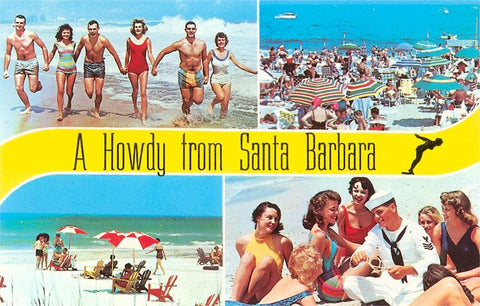 SB-92 Beach Scenes, Howdy from Santa Barbara, California - Vintage Image