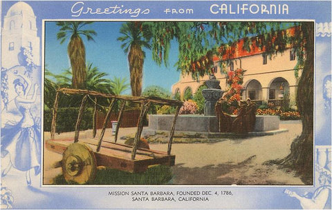 SB-127 Greetings from Mission Santa Barbara, California - Vintage Image