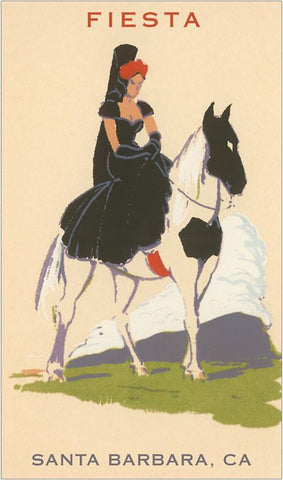 SB-142 Fiesta, Spanish Woman on Horse, Santa Barbara, California - Vintage Image