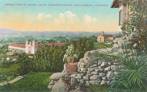 SB-164 Mission and St. Anthony's College, Santa Barbara, California - Vintage Image