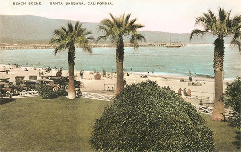SB-205 Beach Scene with Palm Trees - Vintage Image
