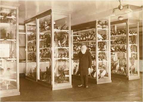 SE-121 Man Standing by Display Cases - Vintage Image