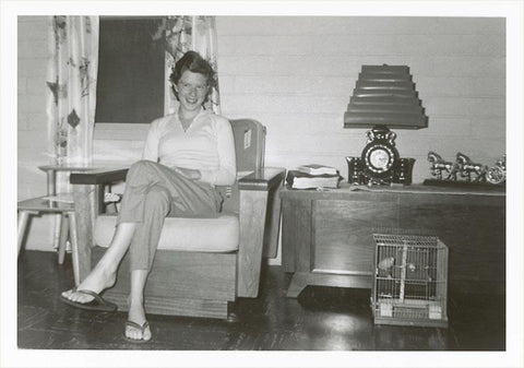 SN-16 Photo of Woman with Stepped Shade Lamp and Canary - Vintage Image