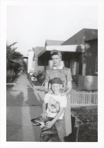 SN-20 Snapshot of Woman, Son and Dog - Vintage Image