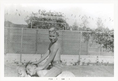 SN-22 Kids Horsing Around in Backyard - Vintage Image