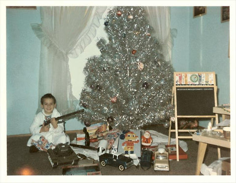 SN-32 Boy with Gun and Fake Christmas Tree - Vintage Image