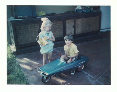 SN-43 Girl and Boy with Race Car - Vintage Image