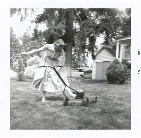 SN-46 Woman in Dress Starting Lawn Mower - Vintage Image