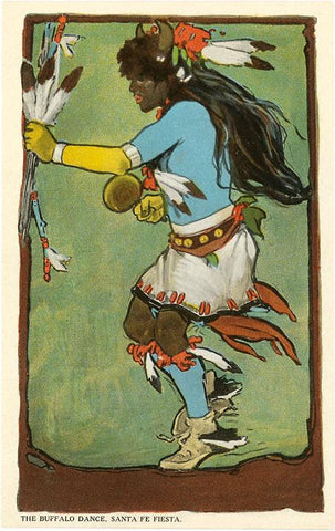 SW-27 Buffalo Dance, Santa Fe Fiesta Illustration - Vintage Image