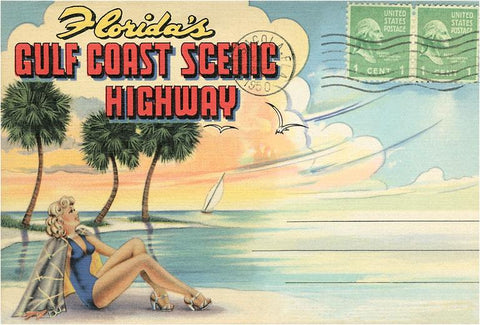 PF-105 Postcard Folder, Florida's Gulf Coast Scenic Highway - Vintage Image