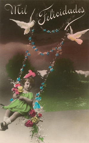 LO-15 Mil Felicidades, Girl on Swing - Vintage Image