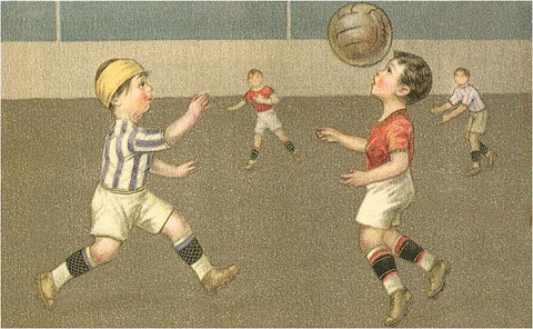 OL-87 Little Boys Playing Soccer - Vintage Image
