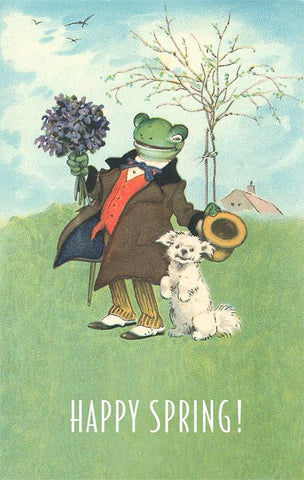 EA-169 Happy Spring, Dressed Frog and Dog - Vintage Image