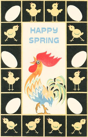 EA-176 Happy Spring, Rooster and Chicken Motifs - Vintage Image