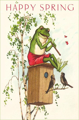 EA-193 Happy Spring, Frog Playing Flute - Vintage Image