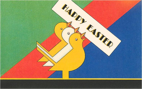 EA-225 Happy Easter, Chicks Holding Sign - Vintage Image