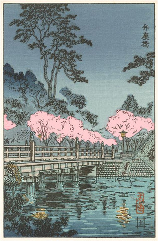 JN-09 Japanese Illustration, Bridge - Vintage Image