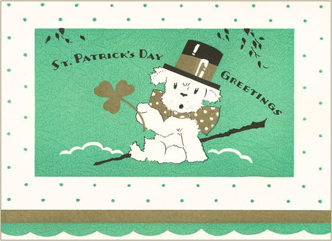 SP-36 St. Patricks Day Greetings, Puppy and Shamrock - Vintage Image