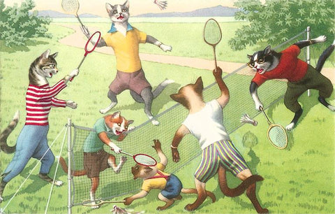 OL-150 Crazy Cats Playing Badminton - Vintage Image
