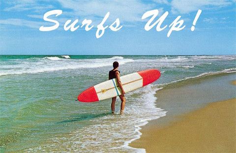 SU-10 Surfs Up! Man Carrying Board - Vintage Image