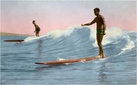 SU-18 Two Long Board Surfers - Vintage Image
