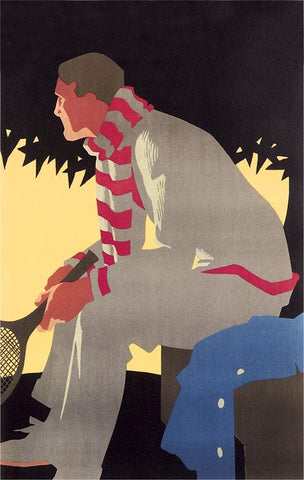 TE-49 Sitting Man with Racket - Vintage Image