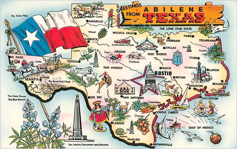 TX-531 Texan's Map of US - Vintage Image