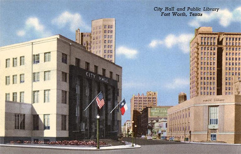 TX-503 City Hall, Public Library, Fort Worth, Texas - Vintage Image