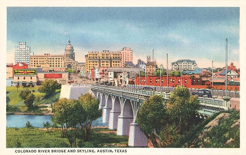 TX-621 Colorado River Bridge and Austin, Texas Skyline - Vintage Image