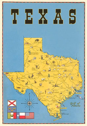 TX-860 Map of Texas, Flags - Vintage Image