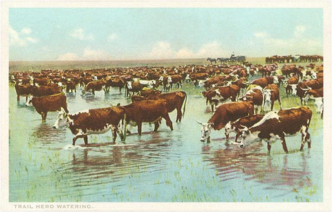 TX-08 Cattle Watering on the Range - Vintage Image