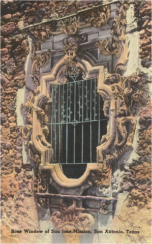 TX-13 Rose Window of San Jose Mission, San Antonio, Texas - Vintage Image