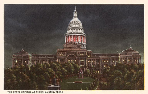 TX-63 Night, State Capitol, Austin, Texas - Vintage Image
