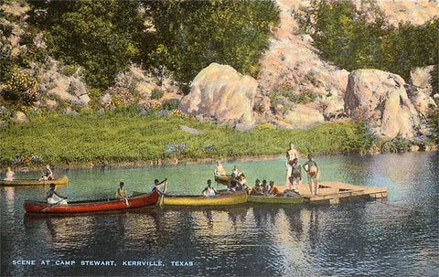 TX-94 Canoes at Camp Steward, Kerrville, Texas - Vintage Image