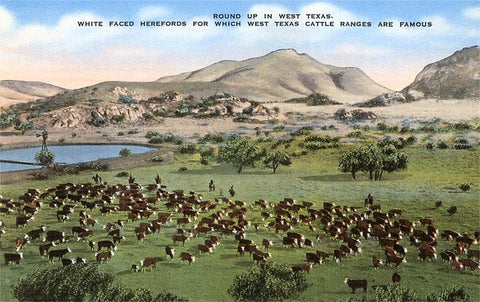 TX-163 Herefords on the Range, Texas - Vintage Image