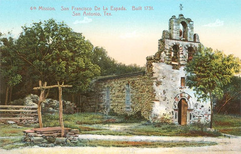 TX-186 Mission San Francisco de la Espada, San Antonio, Texas - Vintage Image