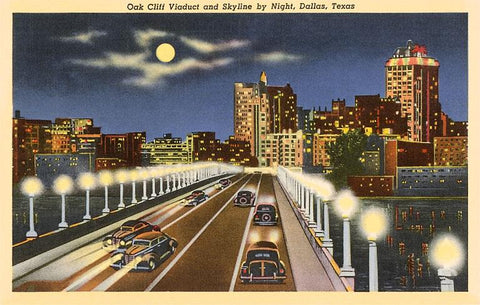 TX-381 Moon over Cliff Viaduct, Dallas, Texas - Vintage Image