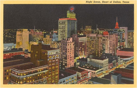 TX-395 Night, Downtown Dallas, Texas - Vintage Image