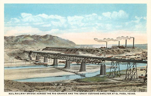 TX-587 Railway Bridge over Rio Grande, El Paso, Texas - Vintage Image