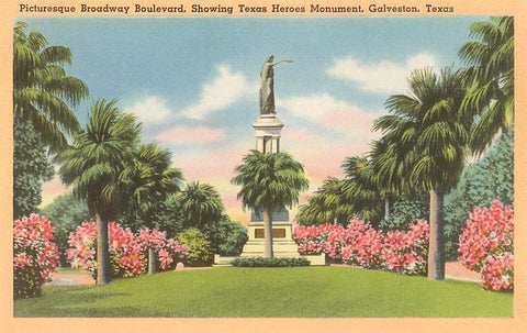 TX-595 Texas Heroes Monument, Galveston, Texas - Vintage Image